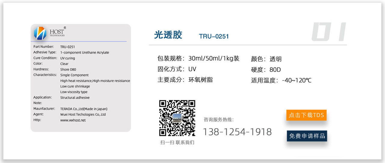 光透膠,是一種透明質(zhì)地的光學(xué)膠,一般可用于精密定位、校準(zhǔn),玻璃、金屬、塑料等的粘合,非常適合用于電路板、光電子裝置或其他電子產(chǎn)品的封裝、密封、導(dǎo)線固定或緊固。光透膠高耐熱、高防潮的樹脂膠,必須通過(guò)紫外線光照射固化,屬于低粘度型,固化收縮率低。