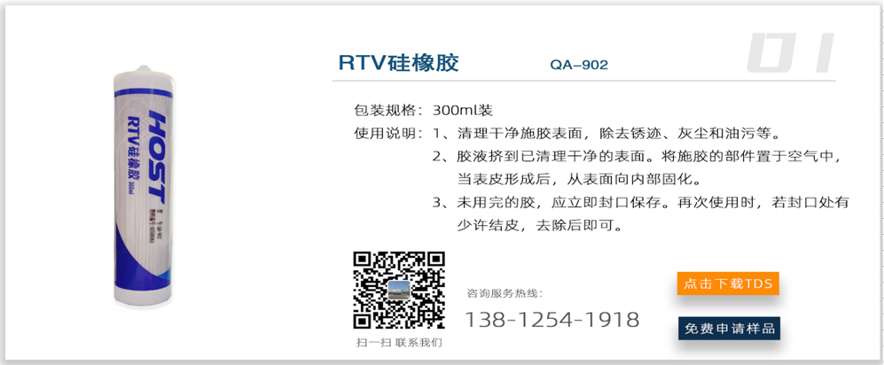 RTV硅膠(室溫硫化型硅橡膠)作為粘接、密封、絕緣、防潮、防震材料,廣泛應(yīng)用于電子元件、半導(dǎo)體材料、電子電器等設(shè)備的粘接、密封,電加熱器、電子儀表的防水、密封及電子元件的灌封等。具體如電加熱末端的密封、小馬達(dá)磁瓦和金屬外殼的粘接、汽車車燈、光學(xué)儀器和鏡頭的粘合密封、電子儀表外殼的粘合、電機(jī)的絕緣保護(hù)、電子元件的粘合密封等。RTV硅膠具有良好的粘接性能,固化物電氣絕緣性能優(yōu)良,具有防潮防震功能。無毒、無污染、無腐蝕。具有良好電絕緣和抗電弧性能,耐老化、防潮,有良好的粘接性能。適用于—60℃~200℃工作溫度。